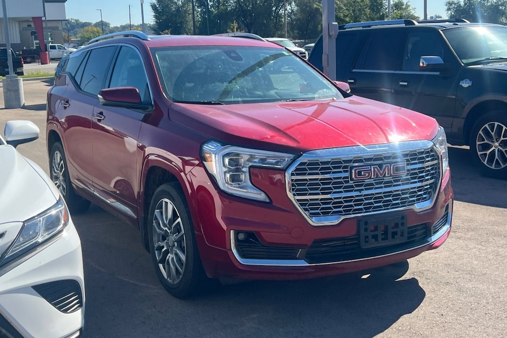Priced below KBB Fair Purchase Price! CARFAX One-Owner. WON'T LAST LONG, AWD, Floor Liner Package (LPO), Front & Rear All-Weather Floor Liners (LPO), Integrated Cargo Liner (LPO), License Plate Front Mounting Package, Navigation system: GMC Connected Navigation, Preferred Equipment Group 5SA. Denali 1.5L DOHC AWD 9-Speed Automatic Odometer is 3015 miles below market average! 24/28 City/Highway MPG. Premium, refined, and impressively capable, this 2023 GMC Terrain Denali delivers luxury-level comfort with the versatility of a compact SUV. As GMCs top trim, the Denali stands out with exclusive styling, upscale materials, and advanced technology designed to elevate every drive.